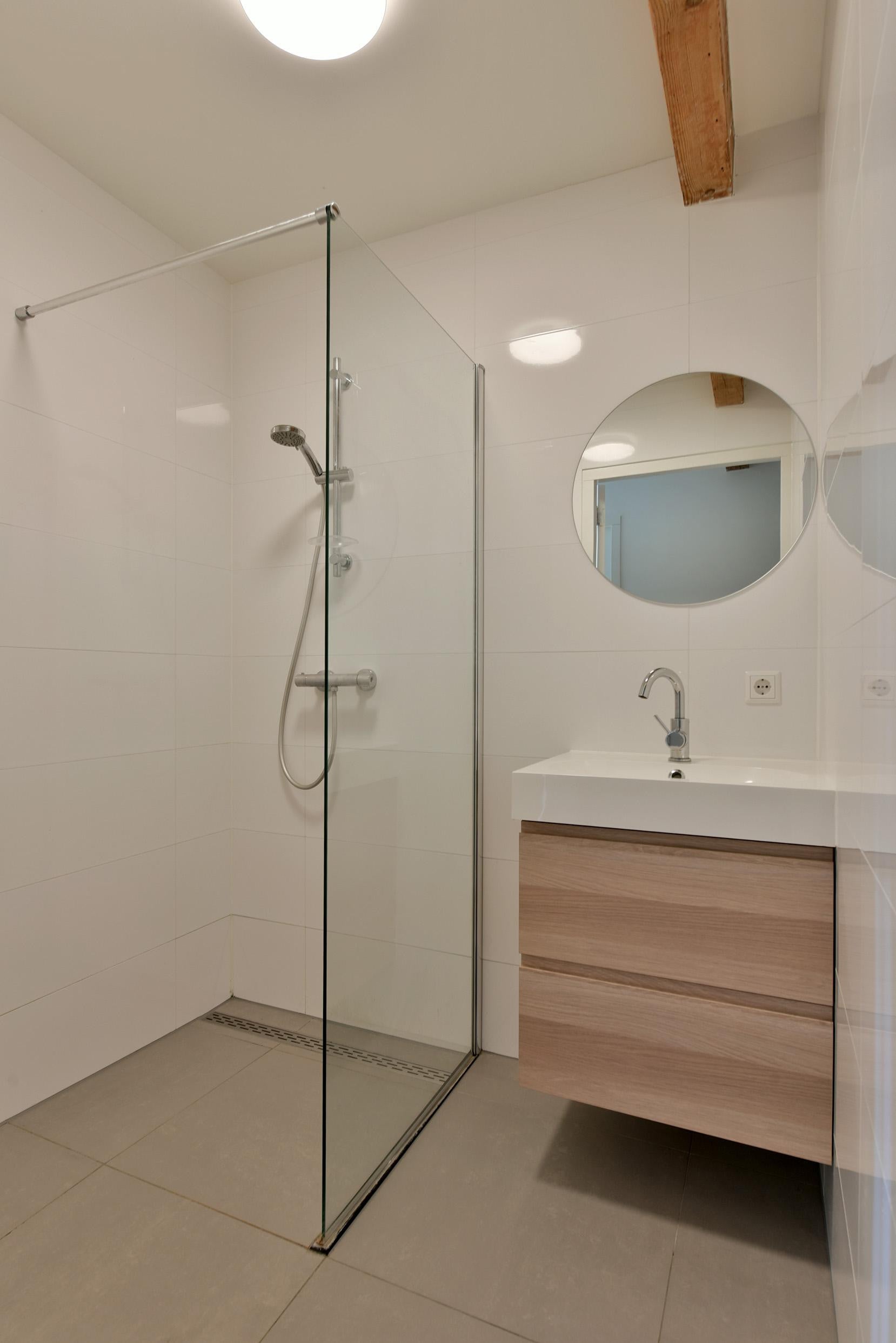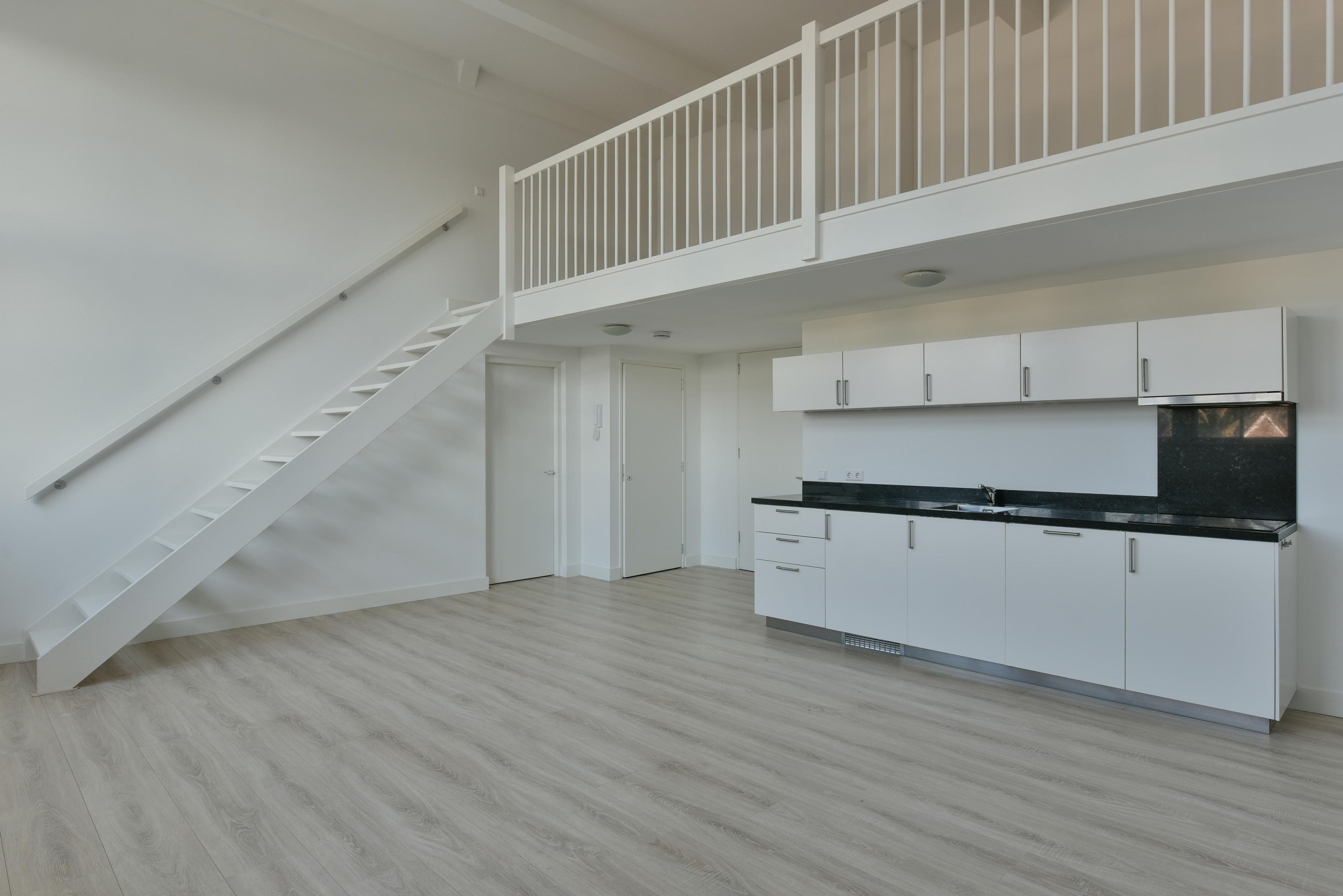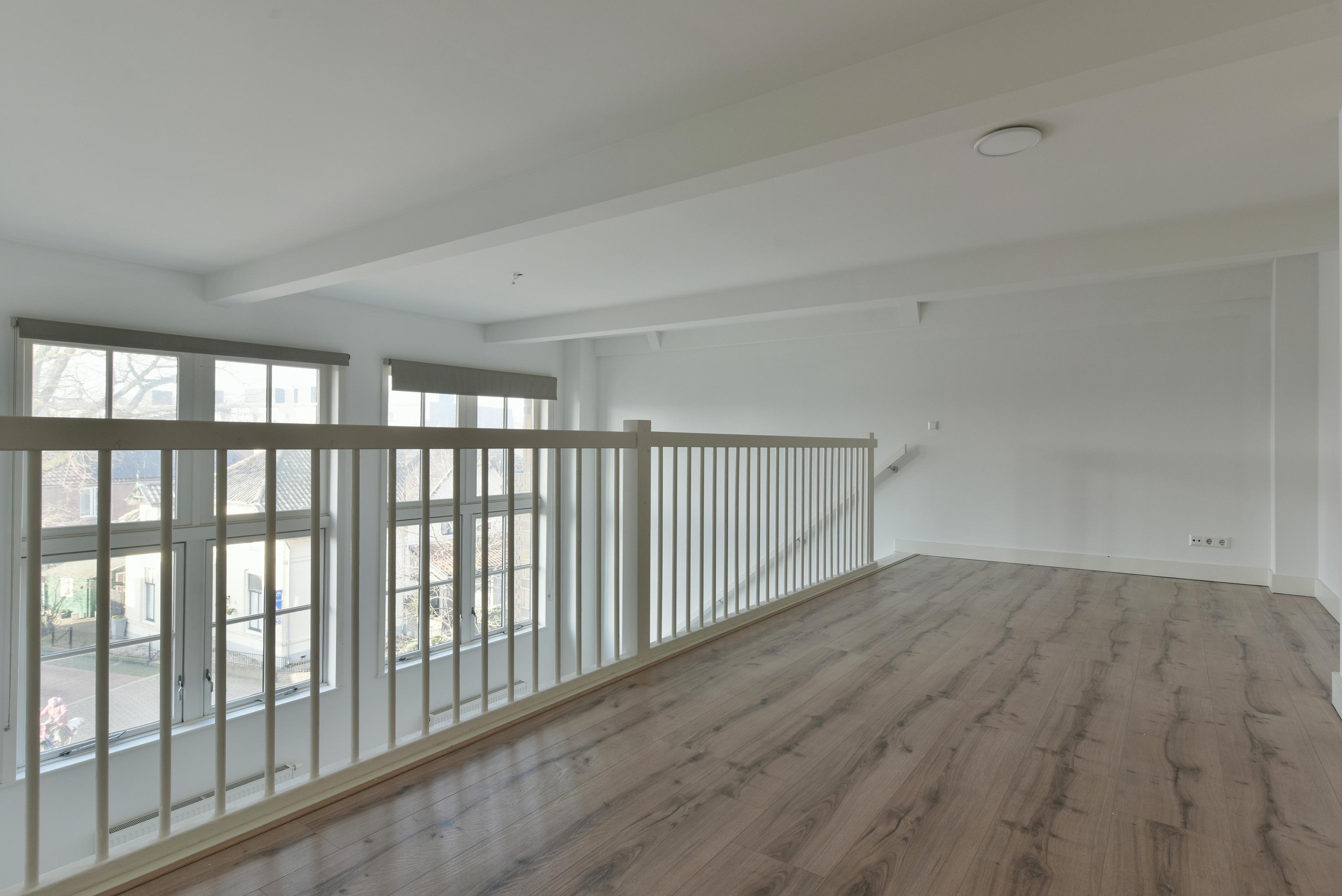 Indeling appartement: bij entree beschikt het appartement over een ruime woonkamer met open keuken. De woonkamer is voorzien van mooie raampartijen en een plafondhoogte van circa 3 meter. In de woonkamer bevindt zich de open keuken, welke is uitgerust met een elektrische kookplaat met geïntegreerde afzuiging, inbouwkoelkast en vaatwasser. Vanuit de woonkamer is direct de eerste badkamer toegankelijk, alsmede de eerste slaapkamer welke zich direct boven de woonkamer bevindt middels een entresol. De gang door bevinden zich de toiletruimte, de tweede badkamer en de overige twee slaapkamers. Er is een inpandige berging met de aansluiting voor de wasmachine en waar de elektrische ketel voor cv en warmwater zich bevindt.