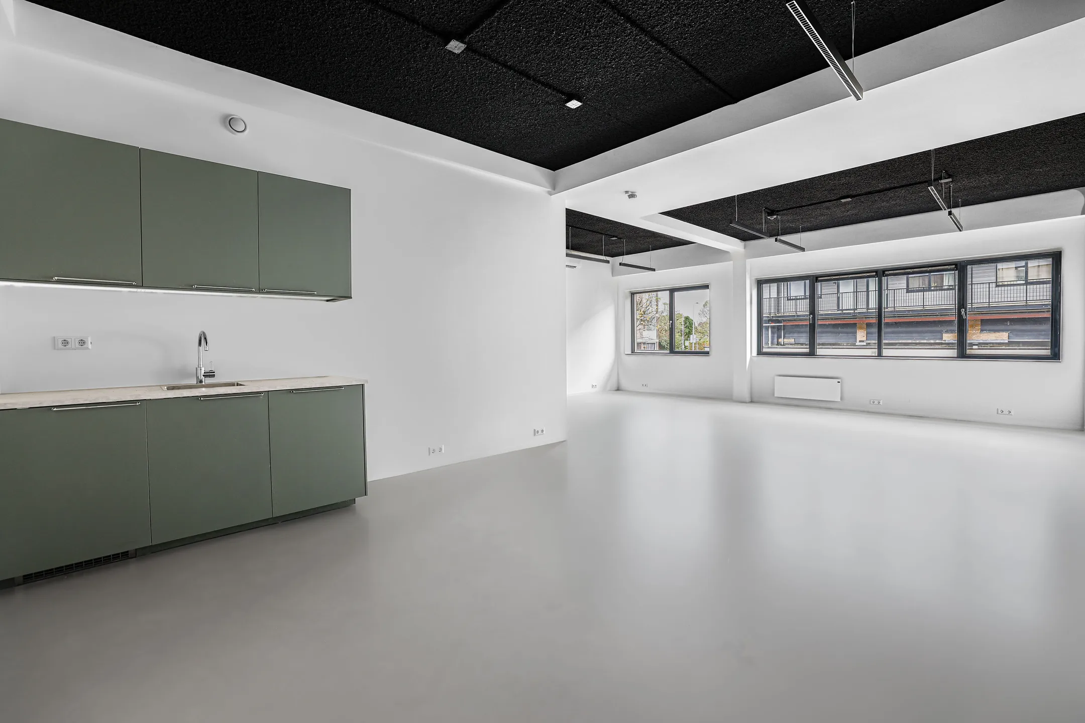 Het gebouw bestaat uit drie verdiepingen, waarvan twee verdiepingen ruimte bieden aan meerdere zelfstandige kantoorunits en de eerste verdieping direct toegang biedt tot het ruime terras. De begane grond en eerste verdieping beschikken over totaal 6 nieuwe kantoren met diverse oppervlaktes, welke zich ideaal lenen voor start/scale-ups en (innovatieve) ondernemers. De moderne ruimtes zijn voorzien van hoge plafonds, stalen deuren en glazen wanden, welke het ruimtelijk gevoel versterken. De huidige beleving wordt aangevuld met een strakke inrichting en een industriele look, om zo een dynamische en inspirerende omgeving te bieden. De aangrenzende parkeerplaatsen maken dit object een ideale plek om kantoor te houden.