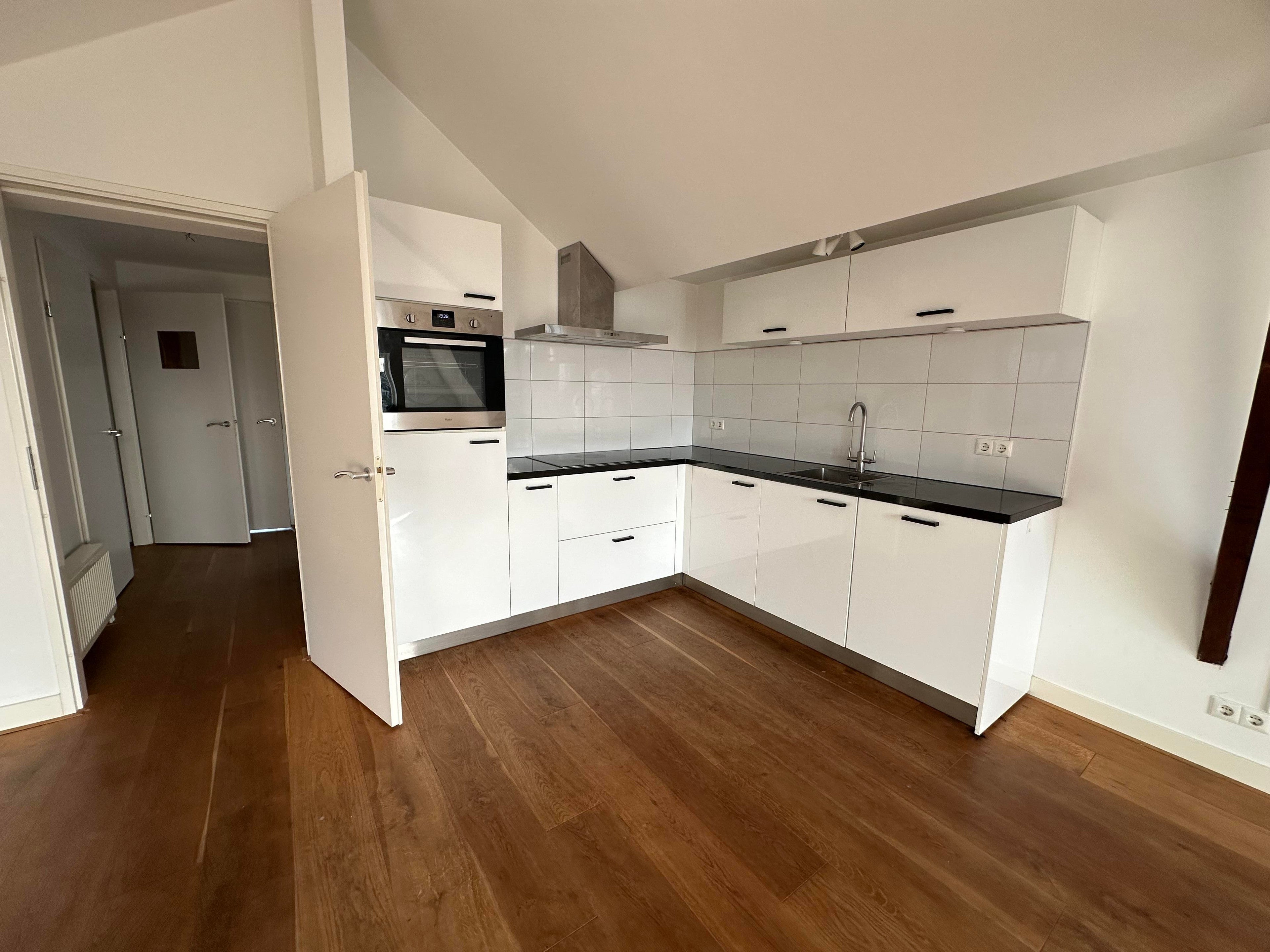 Bij binnenkomst beschikt het appartement over een prachtig afgewerkte en lichte woonkamer met open keuken. De moderne keuken is voorzien van diverse inbouwapparatuur, waaronder een oven, inductiekookplaat, afzuigkap en een koelkast met vriesvak.